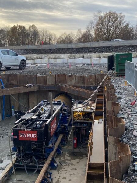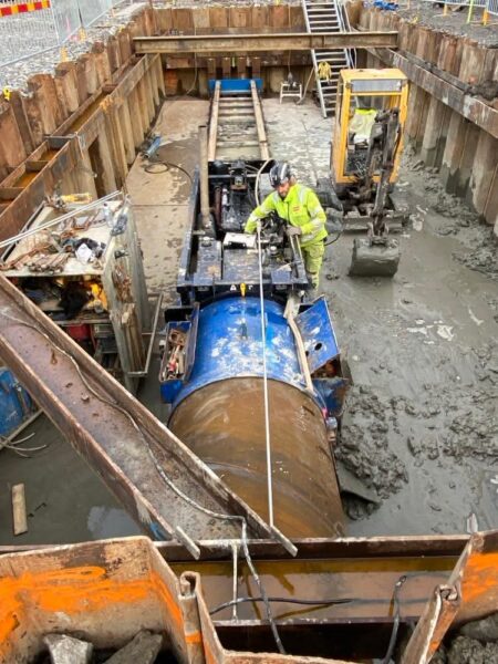 Projektet omfattade spontning utav 2st startgropar med ett avstånd på cirka 500 meter mellan dem, och augerborrning med dimension på 1200 mm och en längd på ungefär 45 meter vardera.