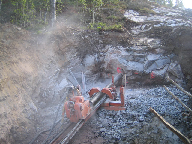 – I Finland gjorde Styrud styrda borrningar på sex platser och hammarborrningar på tre – varav en lite exceptionell långborrning. Två hål, på vardera ca 60 m och genom massivt berg hela vägen. Det gick inte att spränga och skjuta, eftersom det var så fruktansvärt brant. Vi hade inte fått dit vare sig material eller kablar.