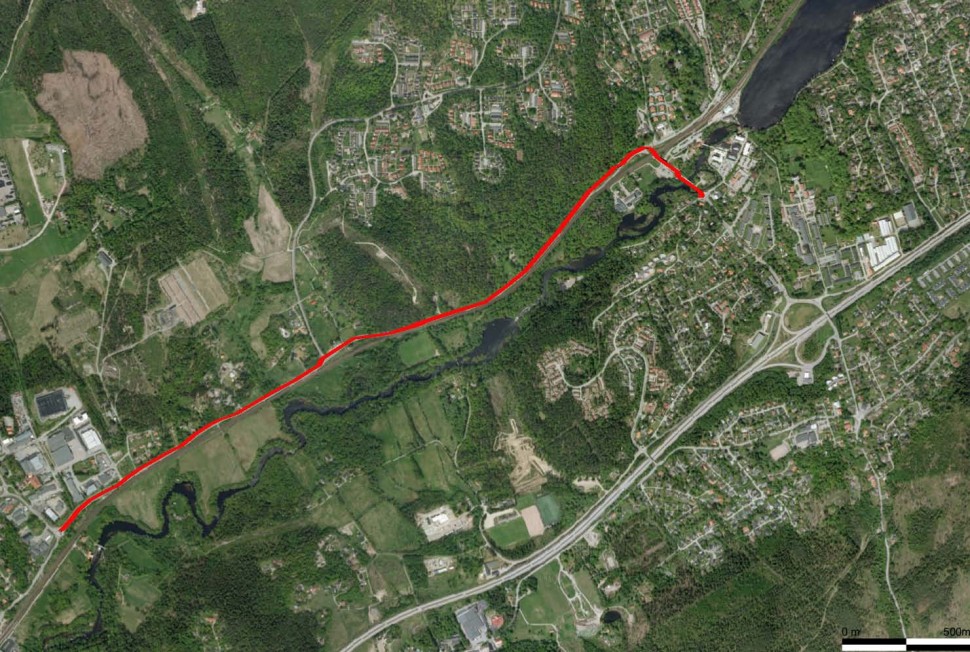 Det finns ett par avsnitt av ledningssträckningen som inte lämpar sig för schaktfri ledningsdragning, så det blir ca 500 meter jordschakt och även ett kortare stycke bergschakt.